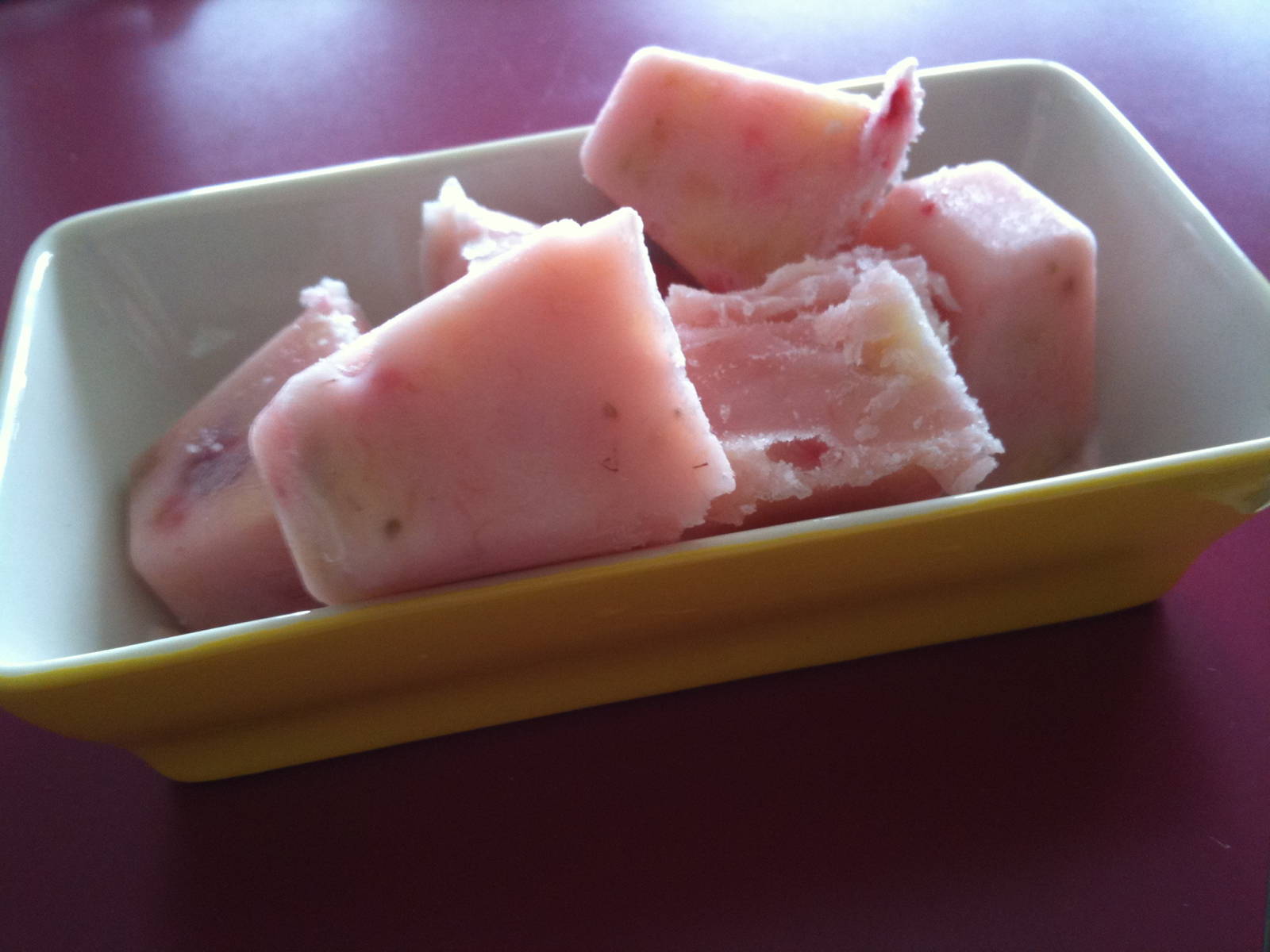 イチゴも加えてつぶして氷作るアレにいれて冷凍室へーーーー、以上‼